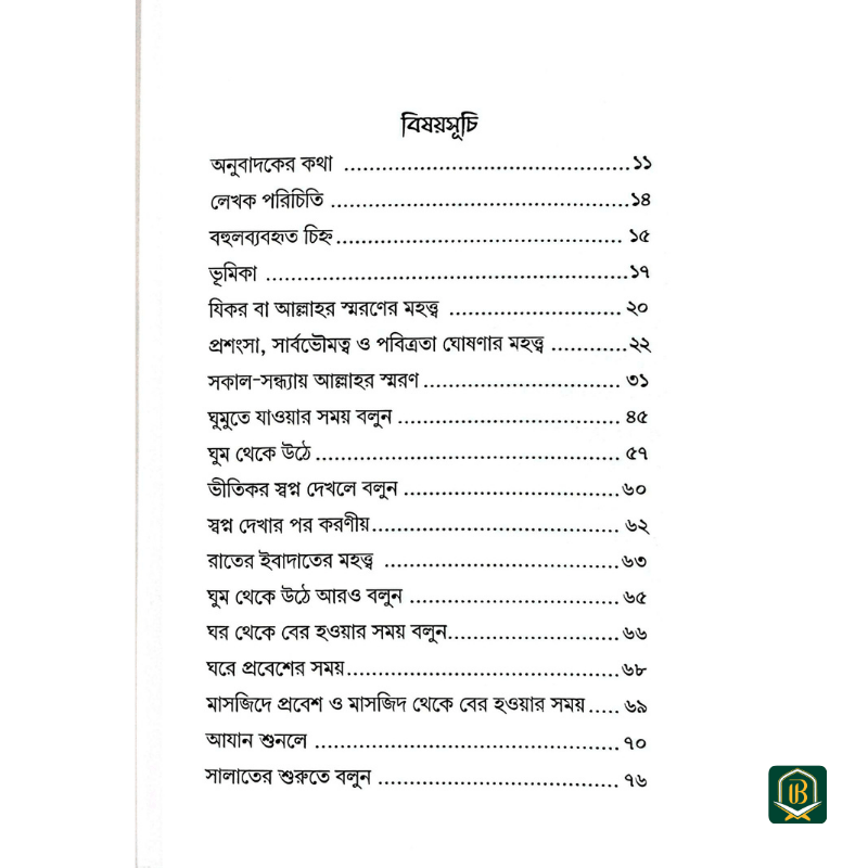 এই বইতে কোরআন ও সুন্নাহ থেকে নির্বাচিত দোয়া ও যিকিরসমূহ সংকলন করা হয়েছে, এবং প্রতিটি দোয়ার সাথে হাদীস ও বর্ণনা যুক্ত করা হয়েছে যাতে পাঠক বুঝতে পারে কখন ও কীভাবে সেসব দোয়া উচ্চারণ করবেন।
