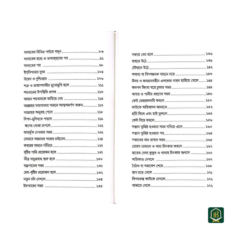 বইটি এমনভাবে সাজানো হয়েছে যাতে দৈনন্দিন জীবনের প্রয়োজনে আল্লাহর কাছে ডাকা সহজ ও সঠিক হতে পারে।